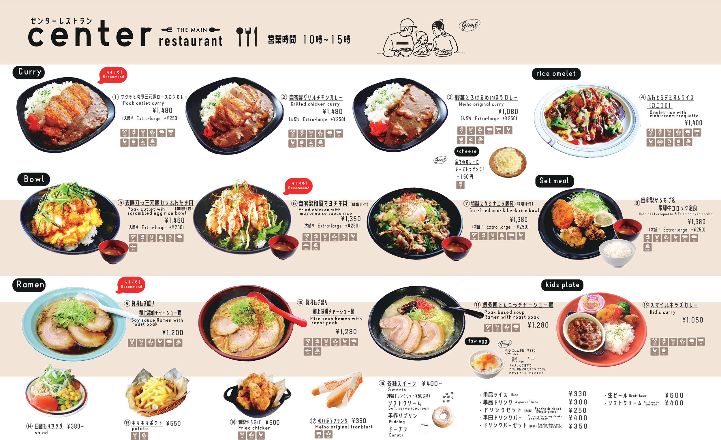 - ※レストランご利用以外でのご予約はできません。お一人様につき一つのメインメニュー(丼、定食・カレー・麺類)のご注文が必要です。