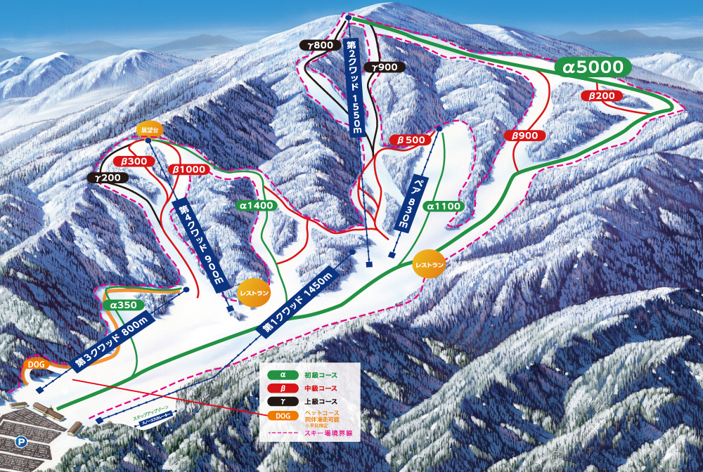 平日限定で、α350コースが同伴滑走可能となります。さらに、第4クワッドリフト山頂には、展望デッキを新設。